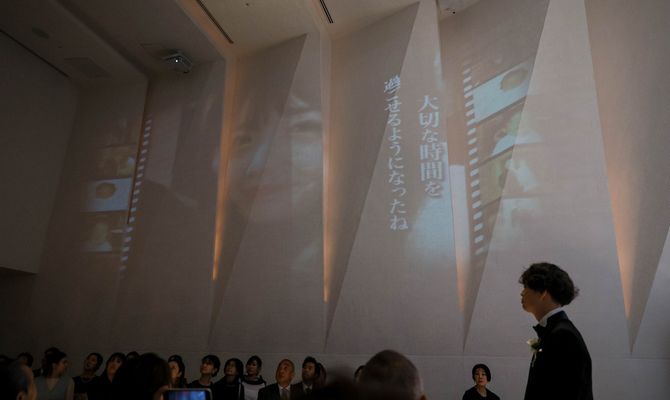 挙式ではチャペル内の壁全体にチャペルムービーを流せる演出があり、とても魅力的でした☆