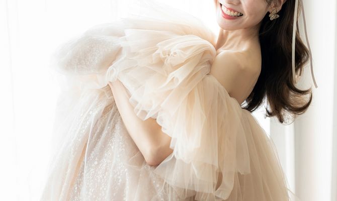 淡いピンクやベージュの色味をベースにアイテムを選びました。