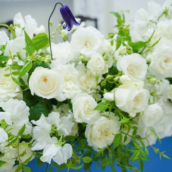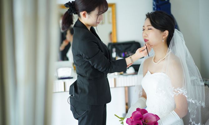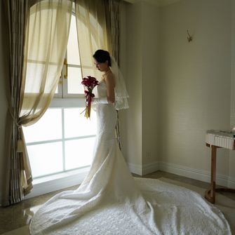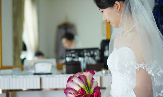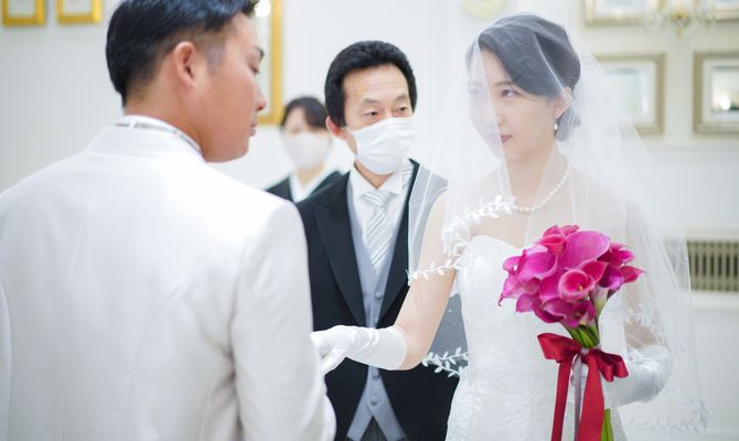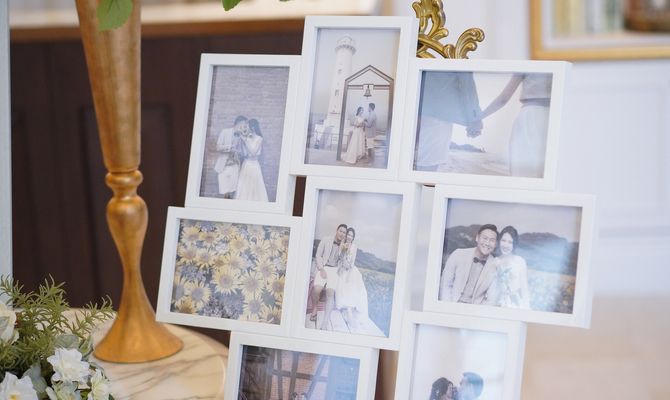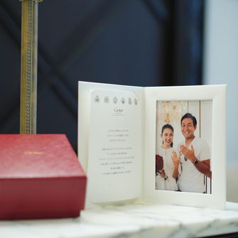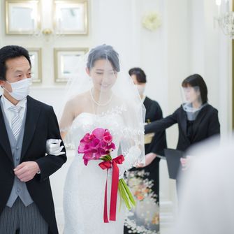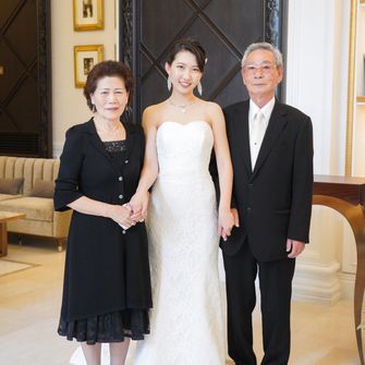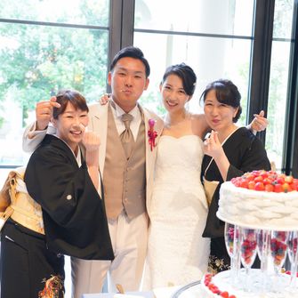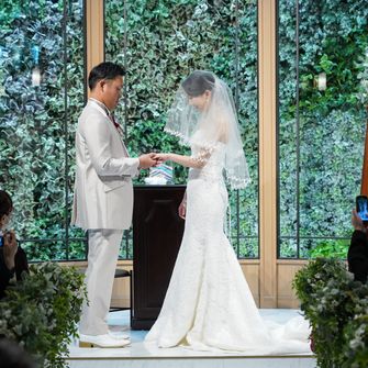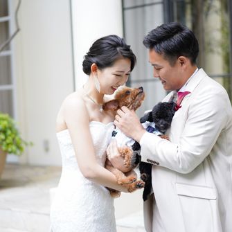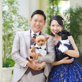 ペットの犬を2匹参加させるのが夢でしたので、リングドックを取り入れました。また自己紹介ムービーを参列者全員の写真を使って作成したり、サンクスバイトを両家の母にしたりとみんなが一つになれるような式を意識しました。