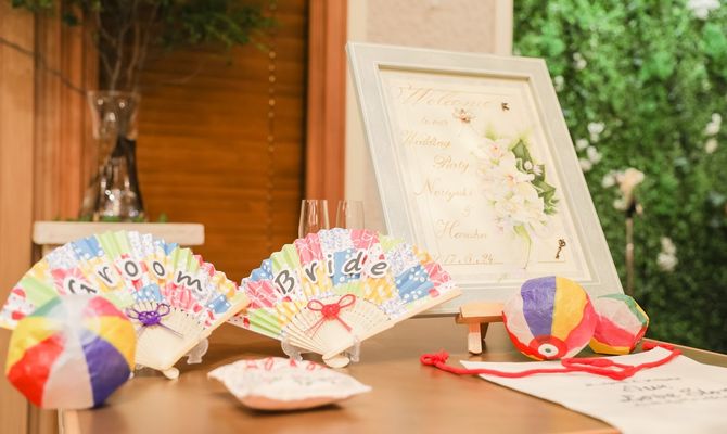 和風とナチュラルで和ちゅらるをテーマに。出来るだけDIY、コスパ 、ゲストへの還元率 、の部分をこだわりました。