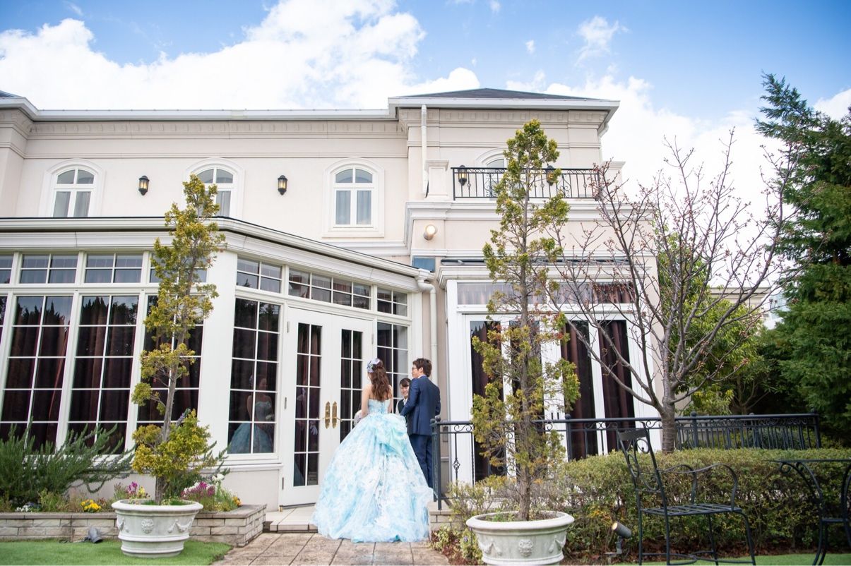 以前行った、パーソナルカラー診断で教えていただいた自分に似合う色のドレスの中から選びました。