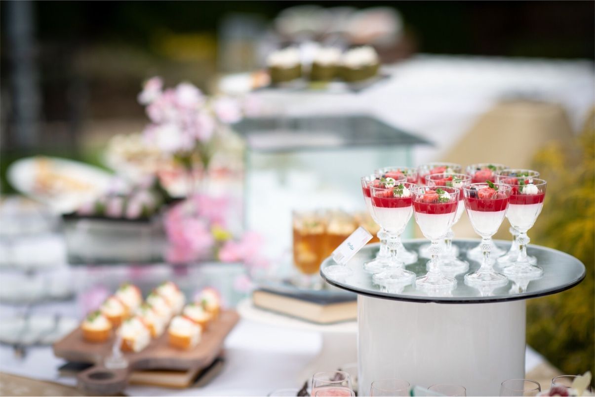 会場にはガーデンが付いているので、そちらでデザートビュッフェなども出来てオススメです。