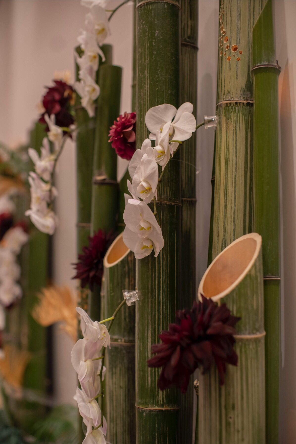 高砂のバックには様々な長さの竹を並べて、より和を演出しました🎋