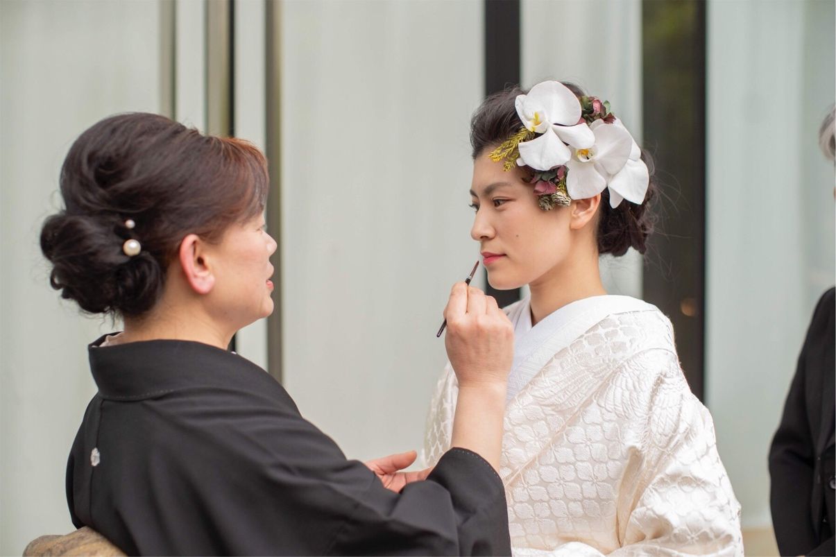 白無垢は、生花の胡蝶蘭を大胆につけ、