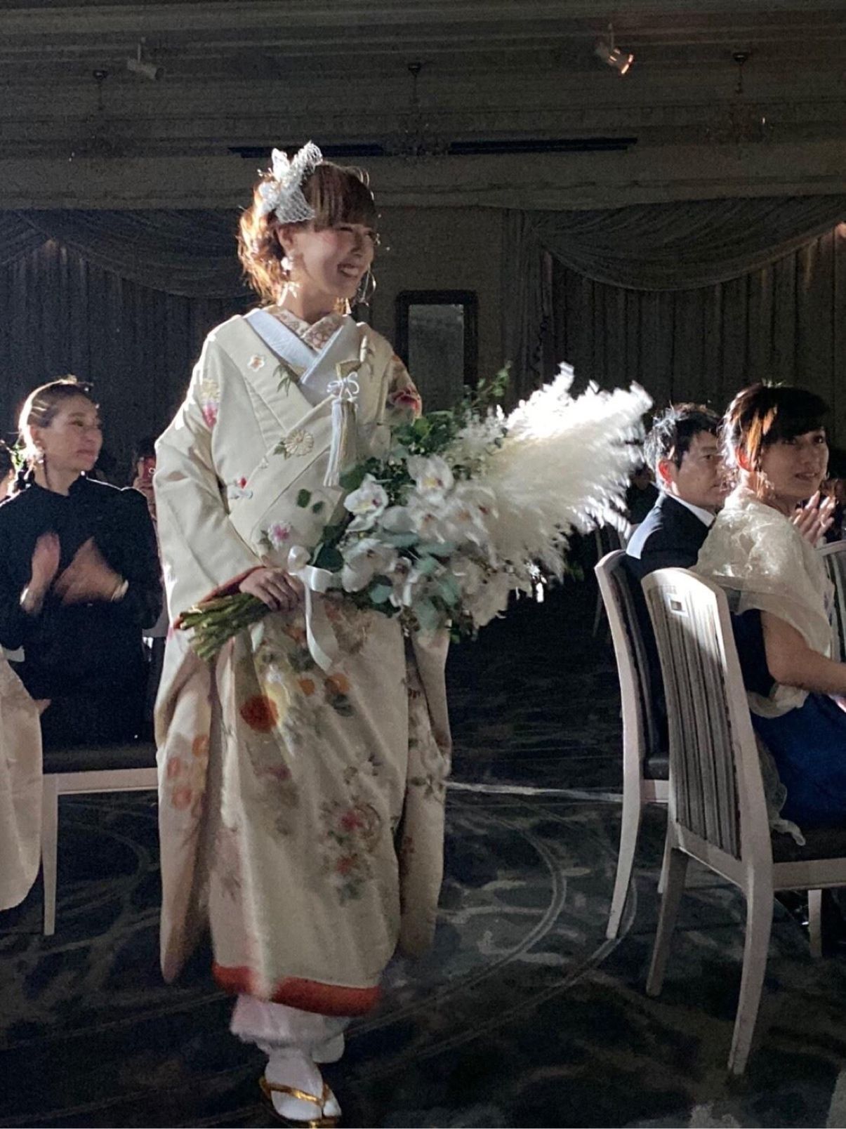 持ち込み美容師をして、ヘアスタイルにこだわりました。またブーケを全部変えたり、お色直しも、挙式ウェディングドレス→披露宴で和装→カラードレスと見てる人も楽しめる結婚式にしました。