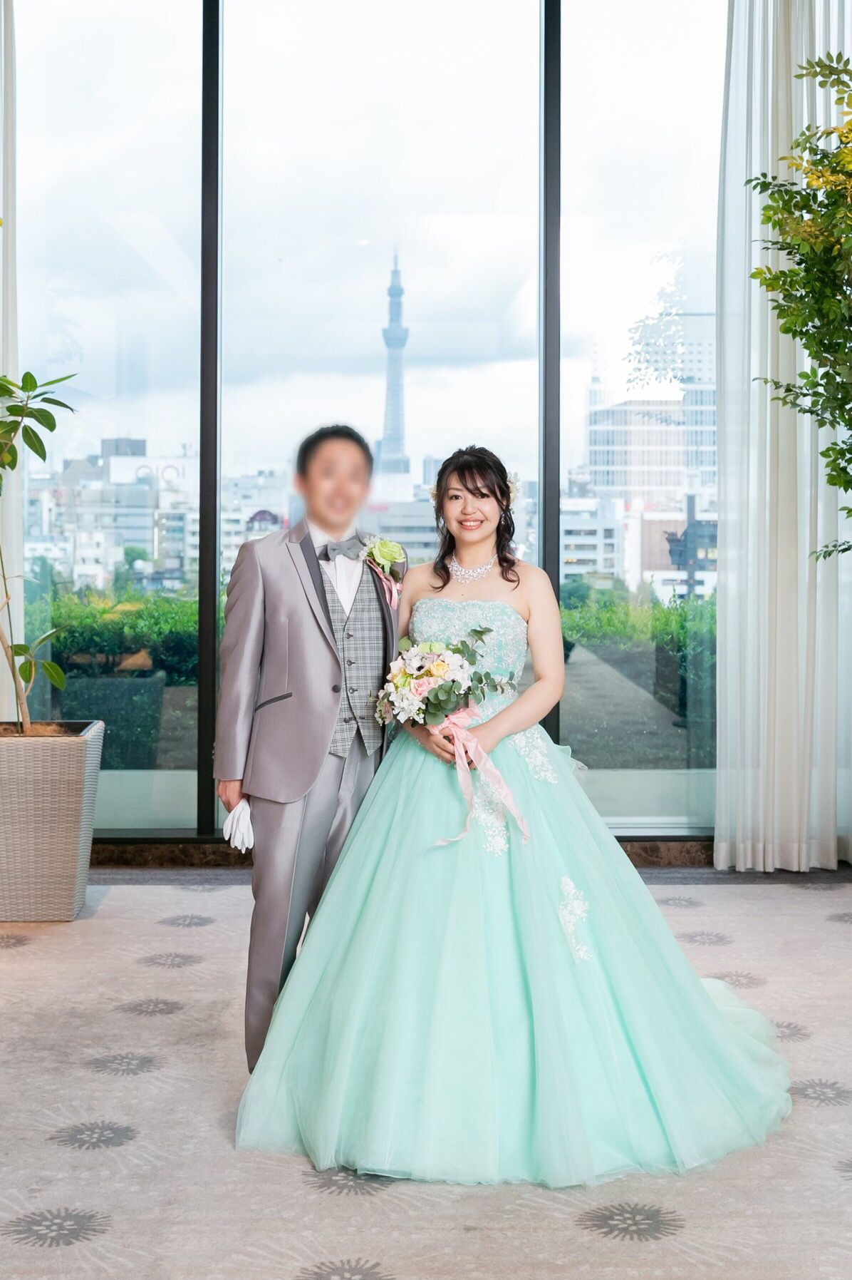 せっかくスカイツリーが見える景色が好きで選んだ式場だけどメイクしているときには見えなくなってしまいました。メイクさんや介添えの方が私が心配するからとカーテンを厳重に閉めて外が見えないようにするくらい(笑)