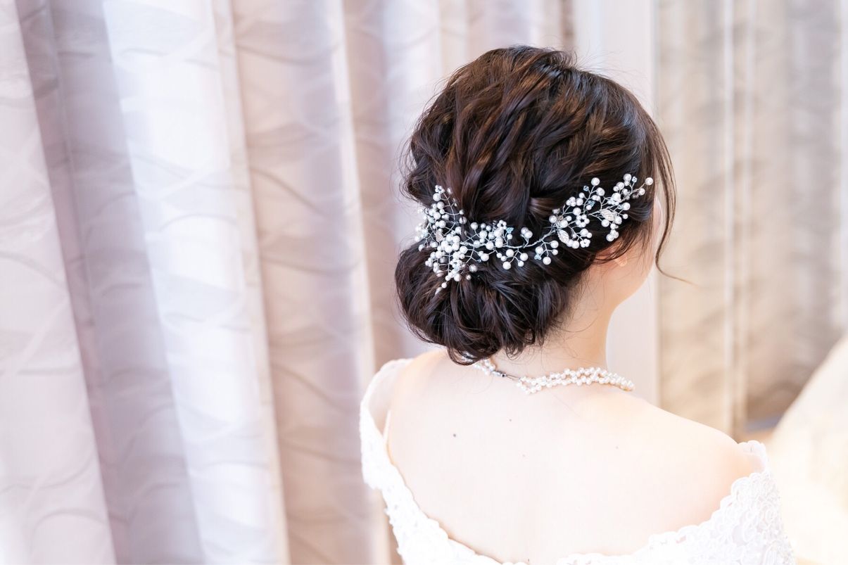 ヘアメイクはウェディングドレスはナチュラルな雰囲気に見えるようにふんわりしたシニヨンにしました。