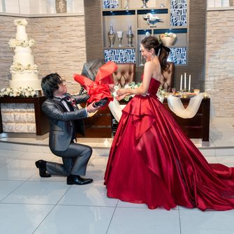 また、披露宴会場にプロジェクションマッピングがあり、今まで参列してきた結婚式とは違う演出ができると思いましたし、夢だった階段もあったので即決でした!
