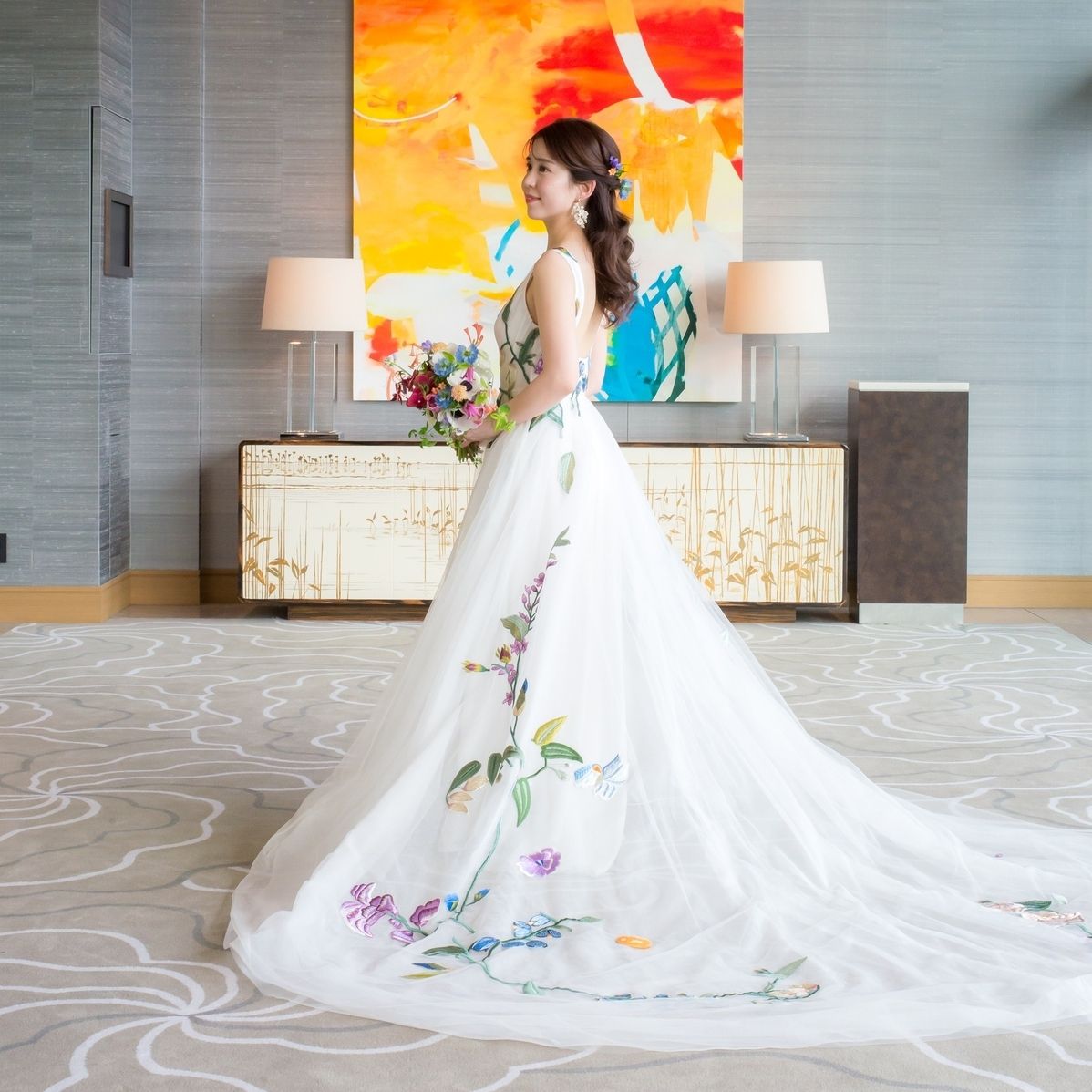 春婚に相応しい、花柄の刺繍が魅力的なドレスです。