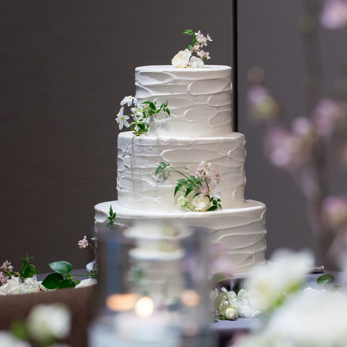 会場の装花とマッチングさせたかったので、フルーツは乗せずに装花装飾をオーダーしました。