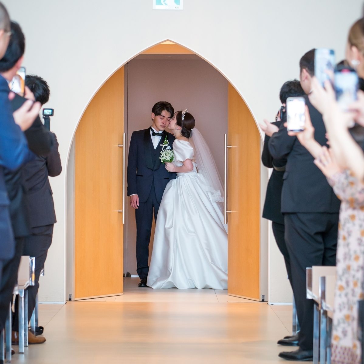チャペルへ入る前にベールダウンをした前室は、明るい雰囲気とは打って変わって静かで厳かな感じであり、入場前に心を整えられるのも魅力的です。
