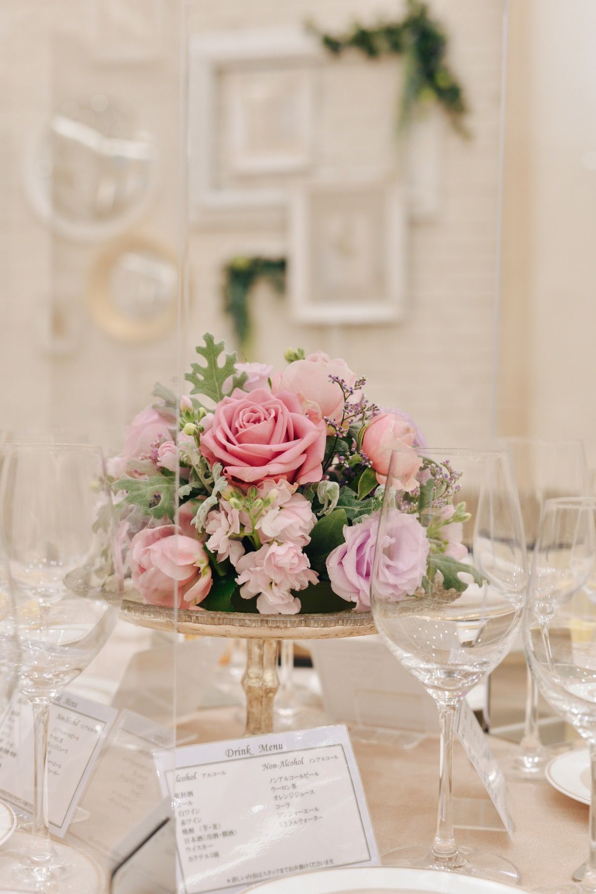 ・ベージュをメインカラーとした明るく柔らかい雰囲気で、所々キャンドルやモニュメントがある、まさに“大人可愛い”会場です♡