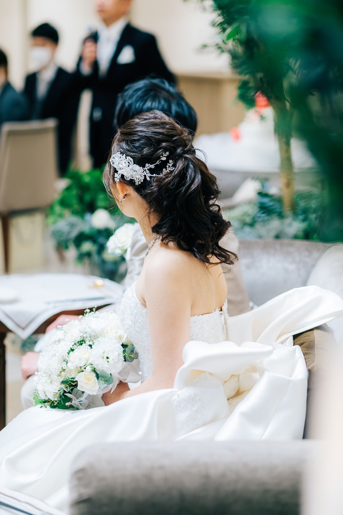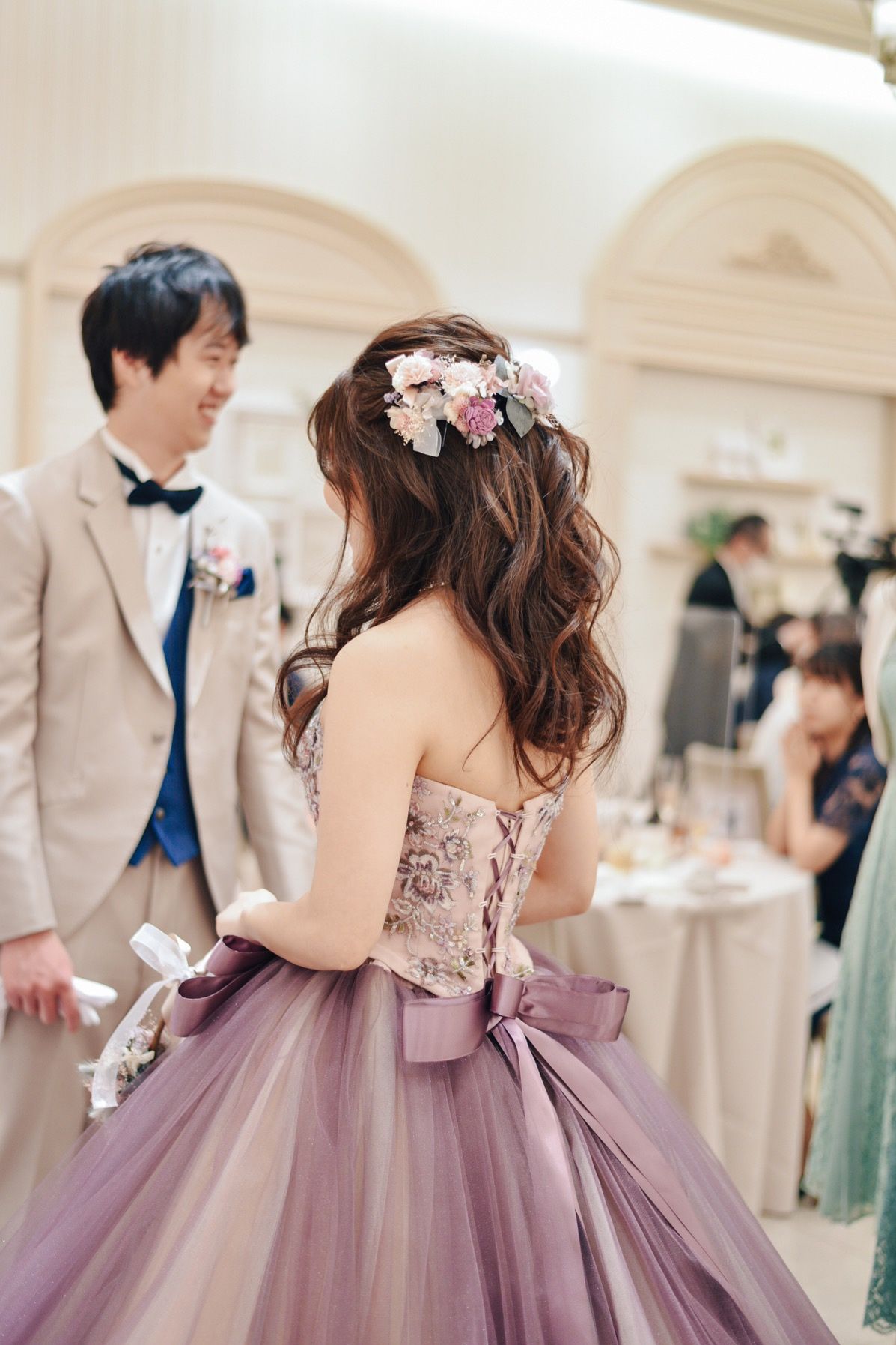 ・再入場時はハーフアップにしました。ゆるめに巻いてもらって、可愛らしい感じにしていただきました。