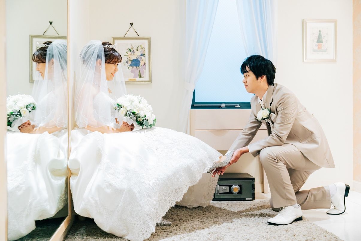 見られることはほとんどないですが、自分のテンションを上げるために購入しました!RANDAのグリッターパンプスです♡キラッキラに輝いてて可愛いし、お値段もお手頃でした!当日はシンデレラポーズで、ブライダルシューズにもフォーカスを当てた写真を撮ってもらいました📸