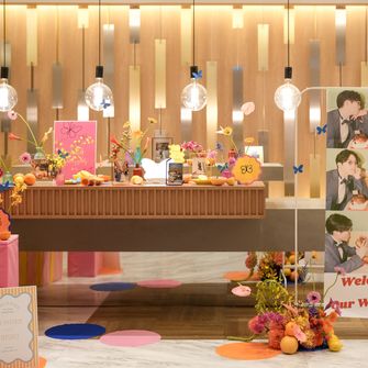 披露宴会場は「とびきりガーリーでメルヘンな雰囲気」、ウェルカムスペースは「カラフルポップ」をコンセプトにしました。
