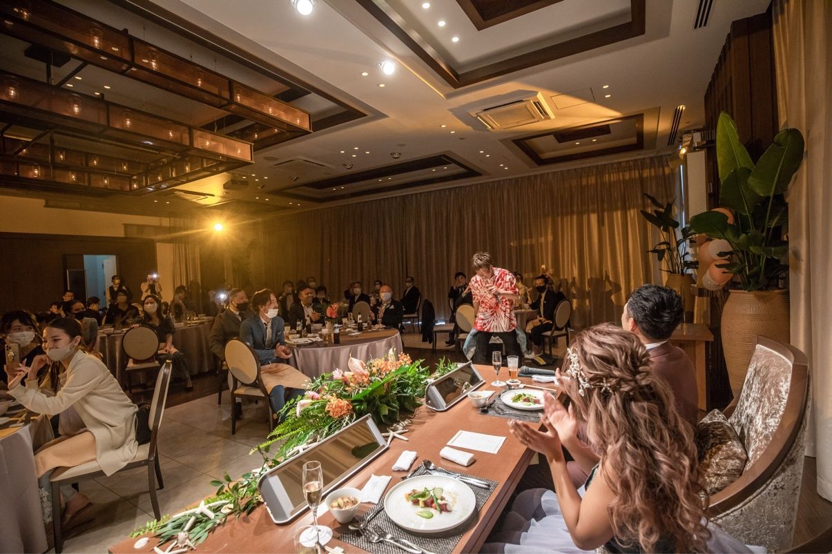 アフターセレモニーでビックシャンパンクラッカーを使ったり、余興で歌とポールダンスのコラボを入れたり、音楽を大好きな洋楽などにしたら『2人らしくて楽しかった!』『こんな結婚式初めて!』と言われました。あとは、『引き出物のセンスがいい』とも言われました。