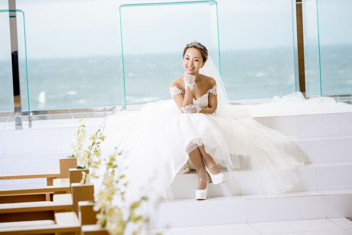 海が丸見えの式場です。海好きな方は、是非ここであげていただきたいです!コンセプトが『海と空に誓う挙式』になっているので、キリスト教ではない方でも気軽にキリスト挙式が挙げられます!