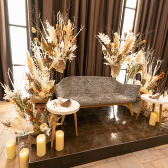 式前に旦那とパーソナルカラーのプロ診断に行き、2人とも1stがオータムだったので自分たちに似合うくすみカラーをベースに色味をチョイスしました。