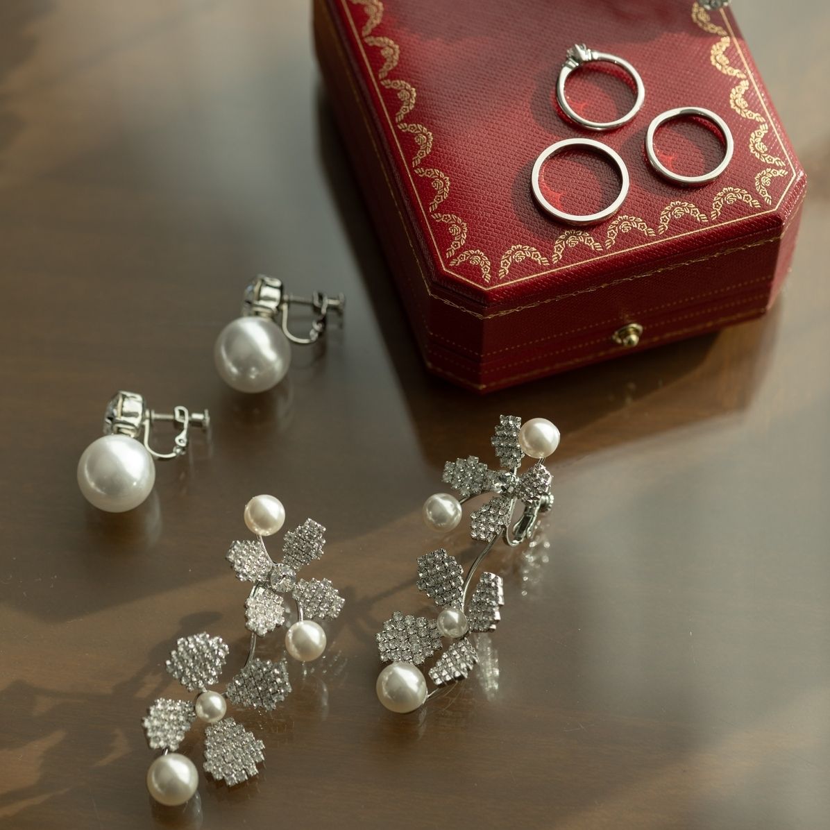 挙式、披露宴ともにElizabeth Bowerのイヤリングを使用しました🎀