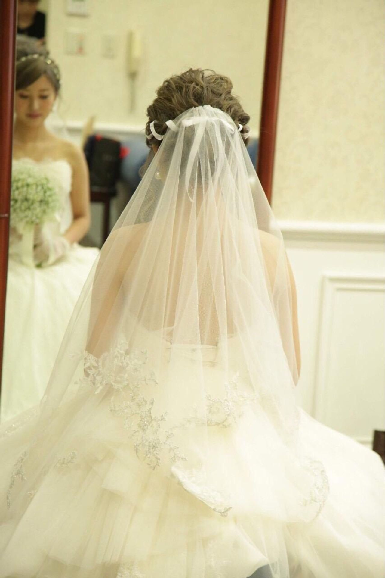 挙式では、絶対に泣かない自信があったのに、いざ本番を迎えて、母からのベールダウンの時に、色んなことを思い、友達や集まってくれた方が泣いているのを見て、更に、色んな物が込み上げてきて、ウルウルしてしまいました。泣きたくなかったので、すごく我慢しました。