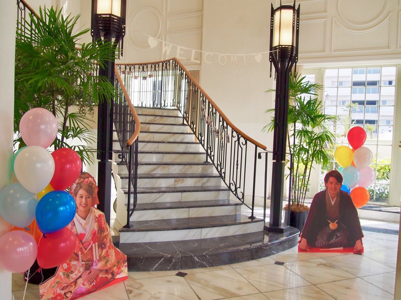 前撮りでしか和装が出来なかったので、当日は等身大パネルを用意しました。