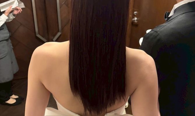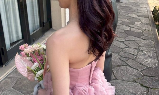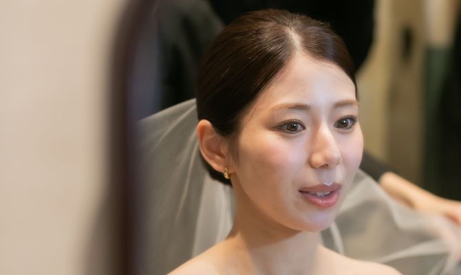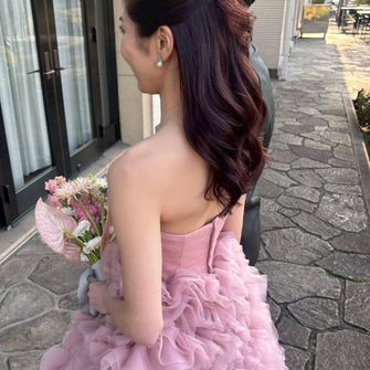 ドレスやヘアメイクもテーマに合わせて、挙式はすっきりとしたシニヨンで上品に、披露宴では少し柔らかさをプラス、二次会では大人っぽく洗練されたスタイルにするなど、全体を通して「甘すぎないバランス」を意識しています。