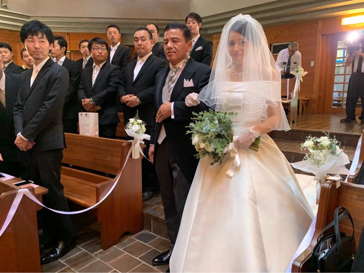 父にエスコートされて入ったチャペルで彼の後ろ姿が見えた時、そして「皆さんに見守られてるな」と感じた瞬間に感動して泣きそうになりました。