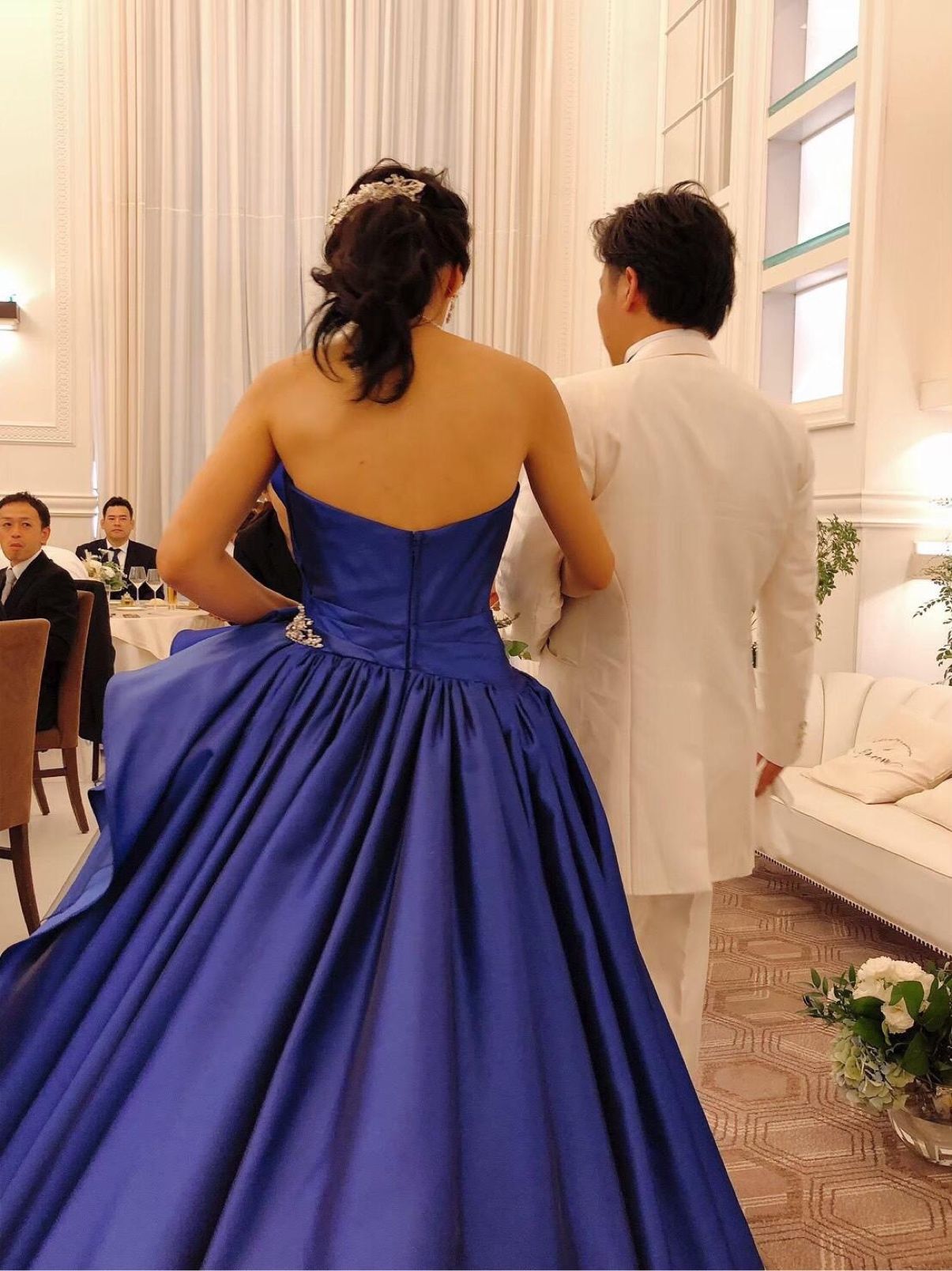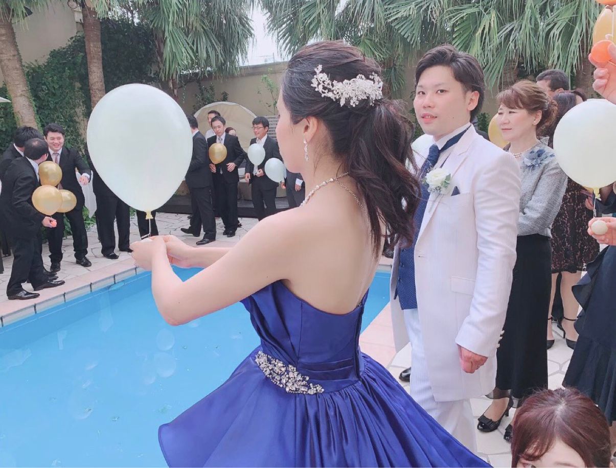 カラードレスもドレスショップ『ブラン・ドゥ・スティルアン』で選びました。華やかなブルーで、ちょっと豪華なものを選んだのがポイントです!