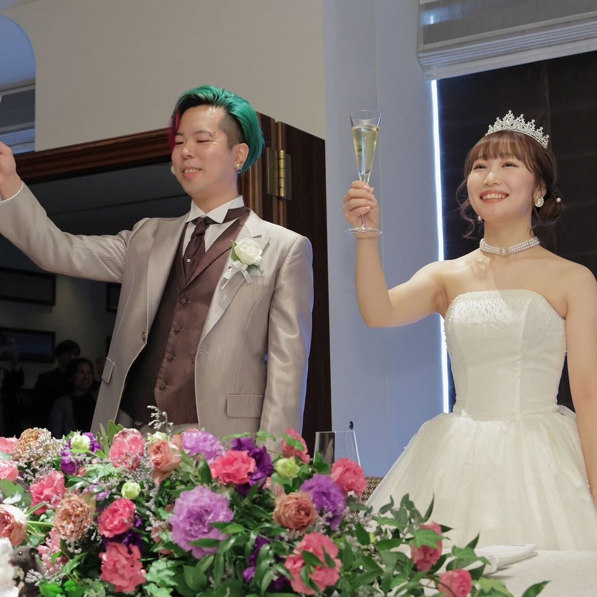 高砂とゲスト席が近く、一緒に写真を撮りやすくて良かったです。サンシャインシティの59階にあるため景色も良く、開放的な空間でした。入口の前には待合ロビーもあるので、ゲストもゆったり過ごせると思います。