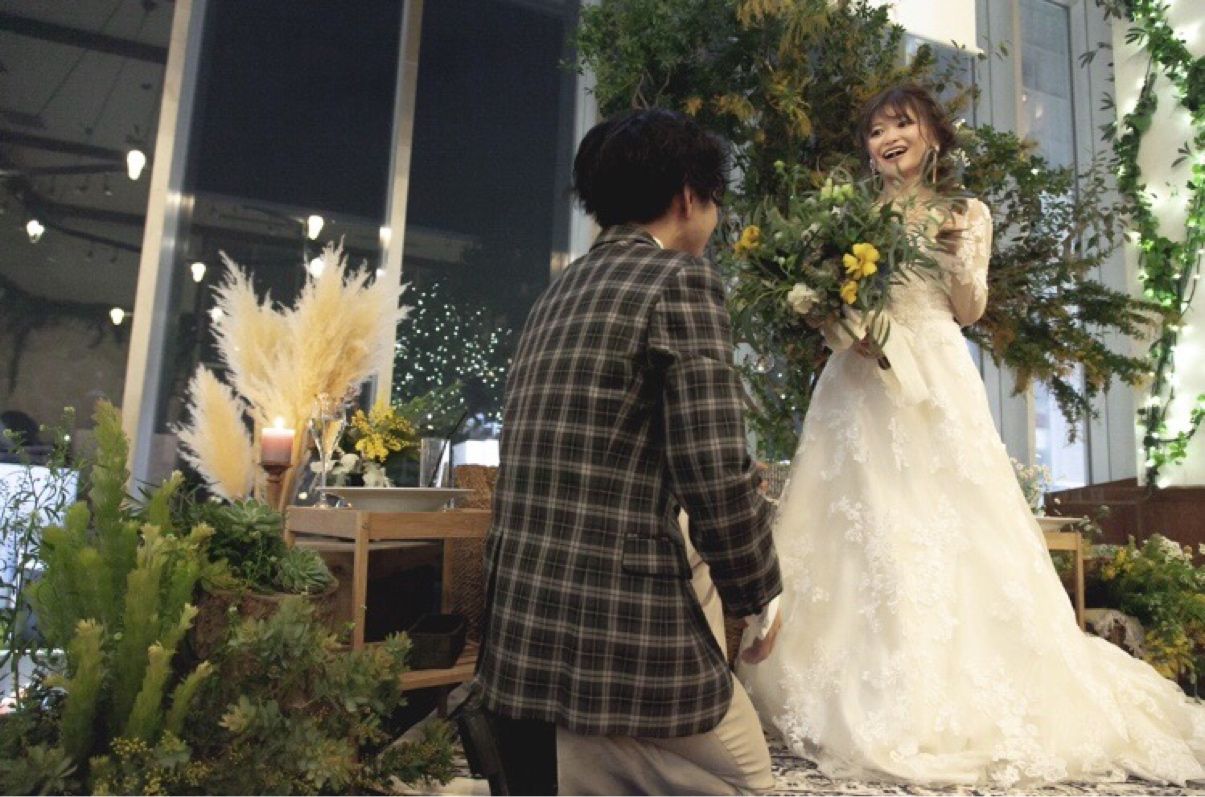 プロポーズぶりに、夫がひざまづいてブーケを差し出してくれて、忙しい結婚式前夜にこっそりこんなに素敵なブーケを作ってくれていたのかと思うと感無量で涙が止まりませんでした。