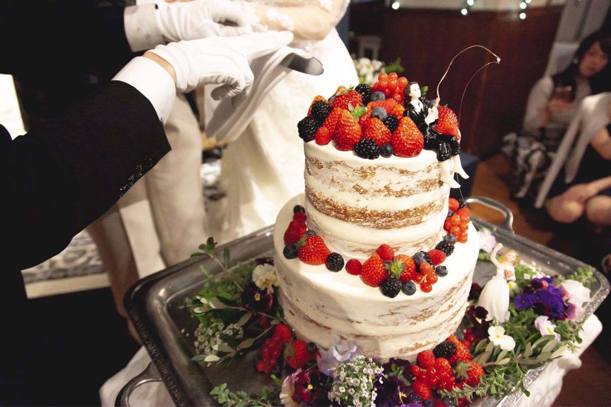 ミックスベリーたっぷりの二段のネイキッドケーキ。