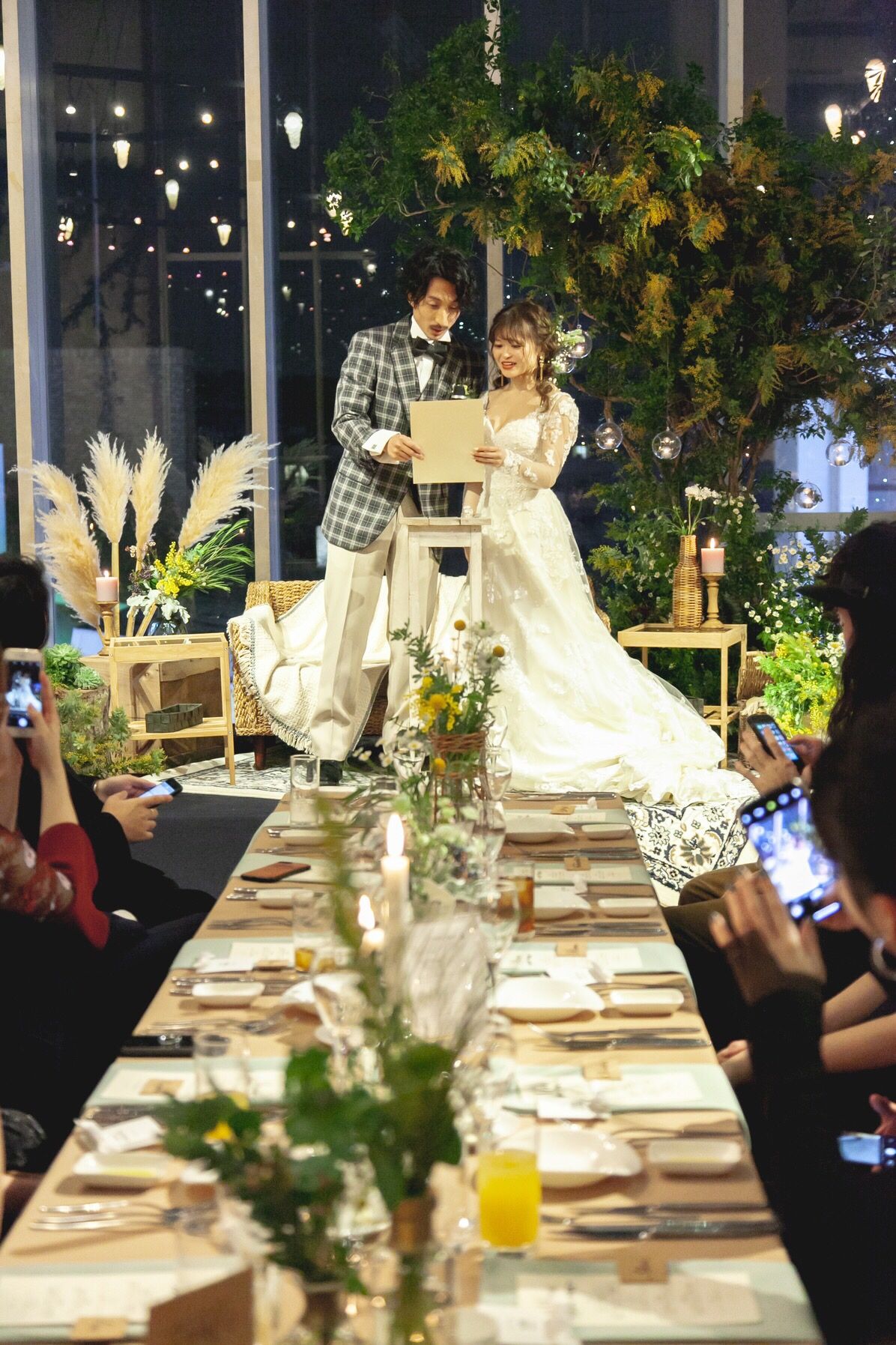 結婚式ってどうしても花嫁ファーストな世界観ですが、わたし達の結婚式ではすべてにおいて新婦だけが作る世界ではなく、いっしょに作り上げることに重きをおきました。