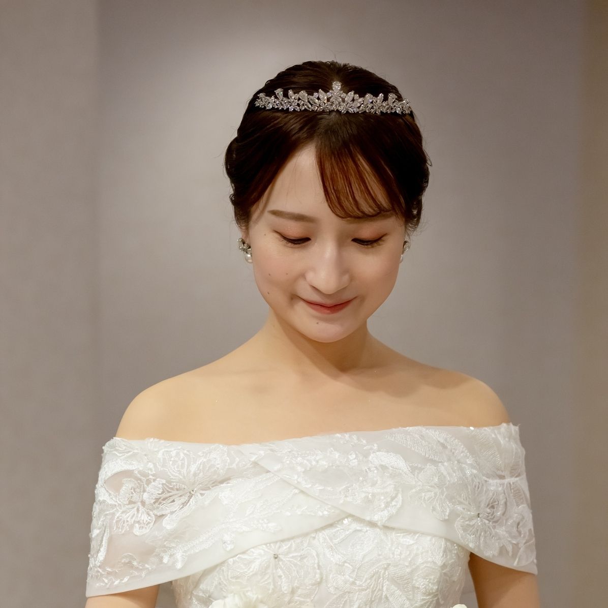 ティアラは高さがありすぎると顔が大きく見えてしまうので、色々試着した中で1番しっくりきたものを選びました。