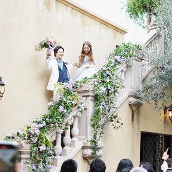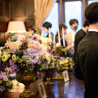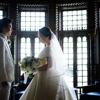 パリでプロポーズ、ハネムーンでウィーンやプラハを訪れたヨーロッパ好きのカップルです。結婚式では、自分たちが愛してやまないヨーロッパの古城や、クラシックホテルのような雰囲気を再現しました。ゲストが伯爵邸に足を踏み入れた瞬間から、帰る時まで、世界観を統一することにこだわってます!