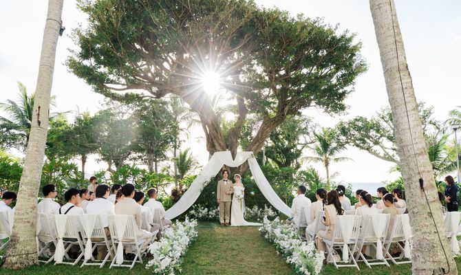 私たちが「沖縄で結婚式したいね」と何気なく話したのは、まだお付き合いしている頃のことでした。その何気ない会話がきっかけとなり、式場探しを始めたときに自然と沖縄が候補に入っていました。