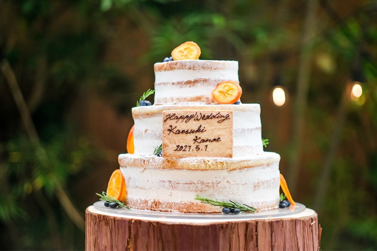 お互い地元が三ヶ日町ということもあり、みかんを使用したナチュラルな3段ケーキに仕上げてもらいました❤︎
