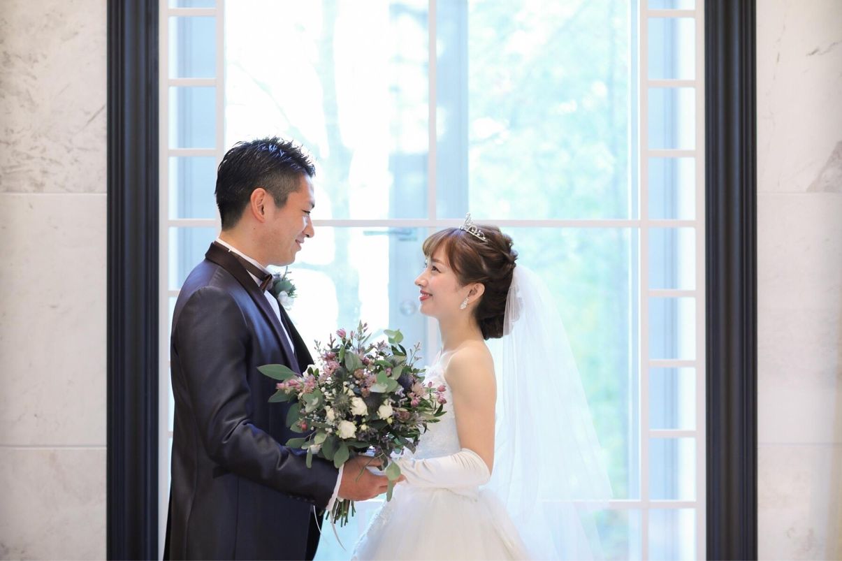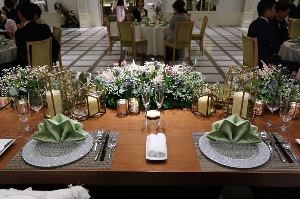 披露宴会場リアトゥーナは、白メインの会場で自然光がたくさん入るので、グリーンが映える空間です。