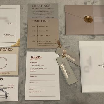 温かみのある、和やかな雰囲気の結婚式にしたかったので、DIYした招待状を送ったり、一人ひとりへメッセージカードを作成したり、結婚証明書も自分で縫いゲストの参加型のものにしました。