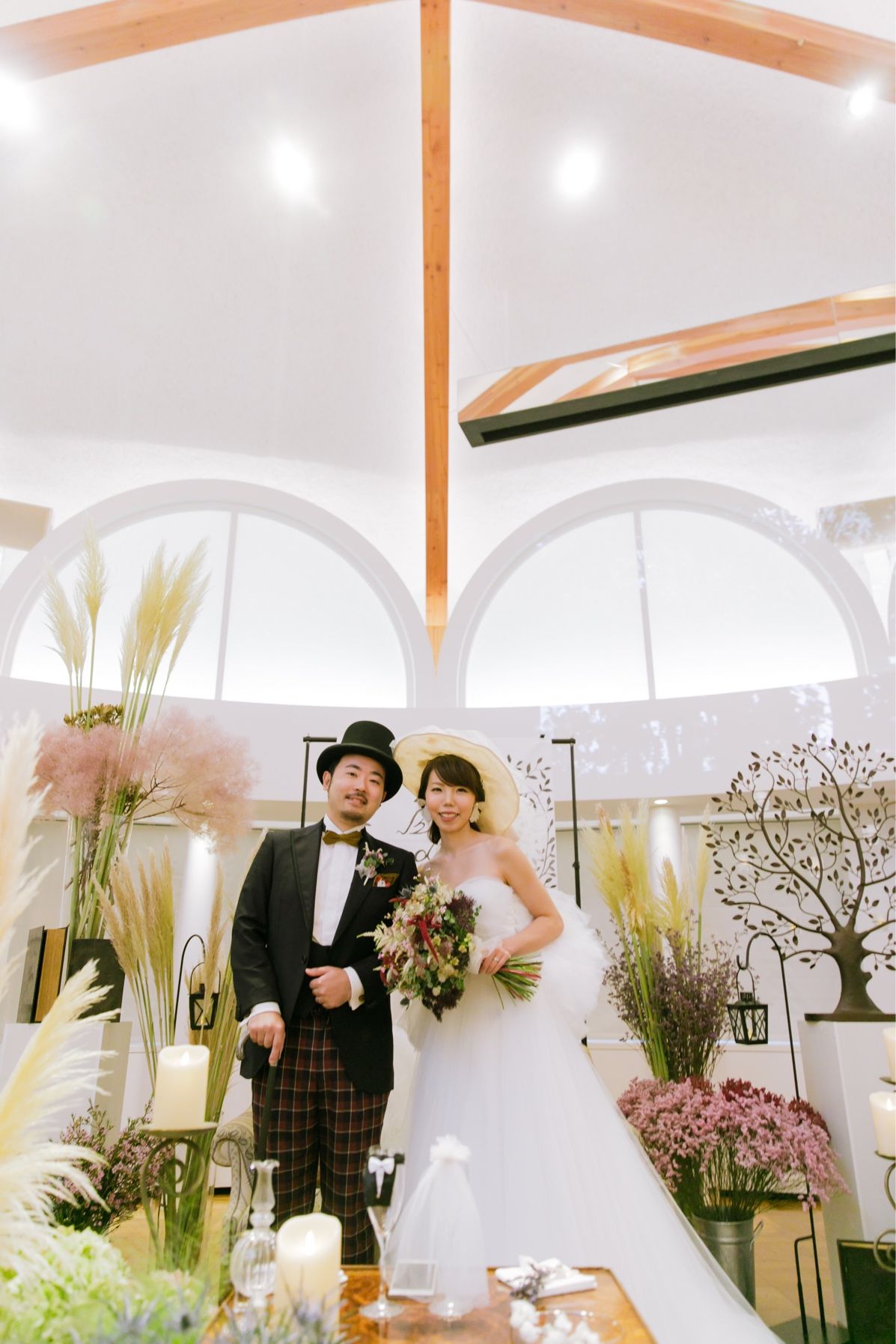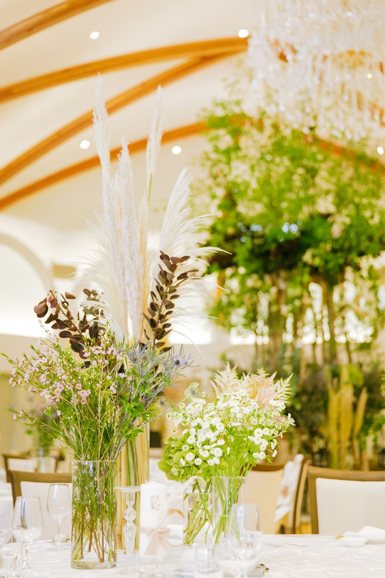 パンパスグラスをメインに高さを出してらったテーブルコーディネートにしていただきました。