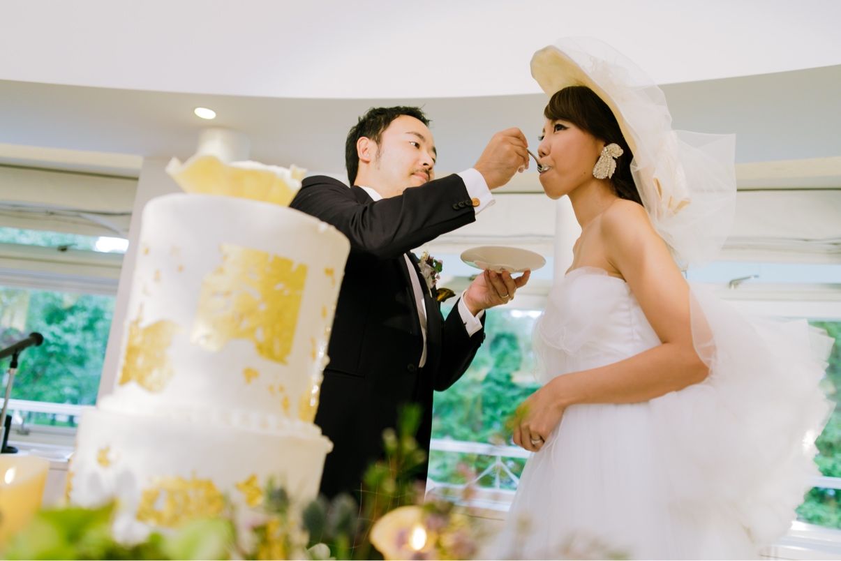 2段でできた、金箔をあしらったウェディングケーキをお願いしました。