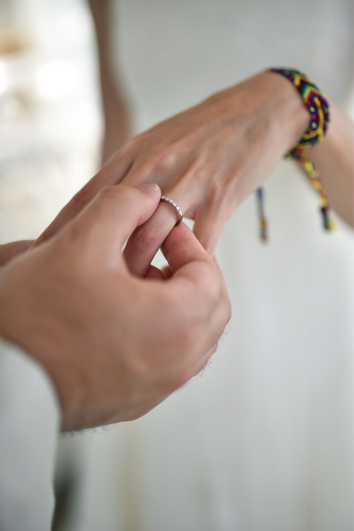 婚約指輪をさらに華やかに見せるためにエタニティのデザインにしています。