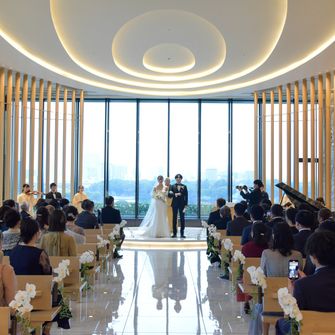 コロナ禍だったこともあり「ゲストに安心して楽しんでもらえる式」「ゲストたちと沢山コミュニケーションが取れる式」がテーマです。地方のゲストたちが新幹線一本で来れる立地は絶対条件でした。また、温かみのある洗練されたチャペルが気に入り、東京會舘を選びました🌿