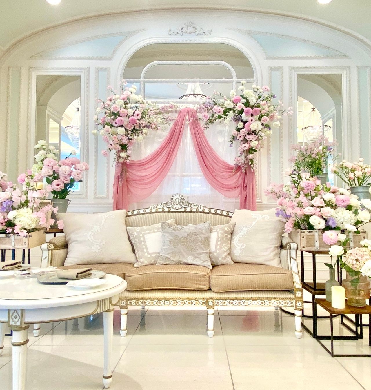 ベルサイユ宮殿の園庭内にあるマリーアントワネットの離宮のような会場でプリンセス気分を存分に味わえます💗