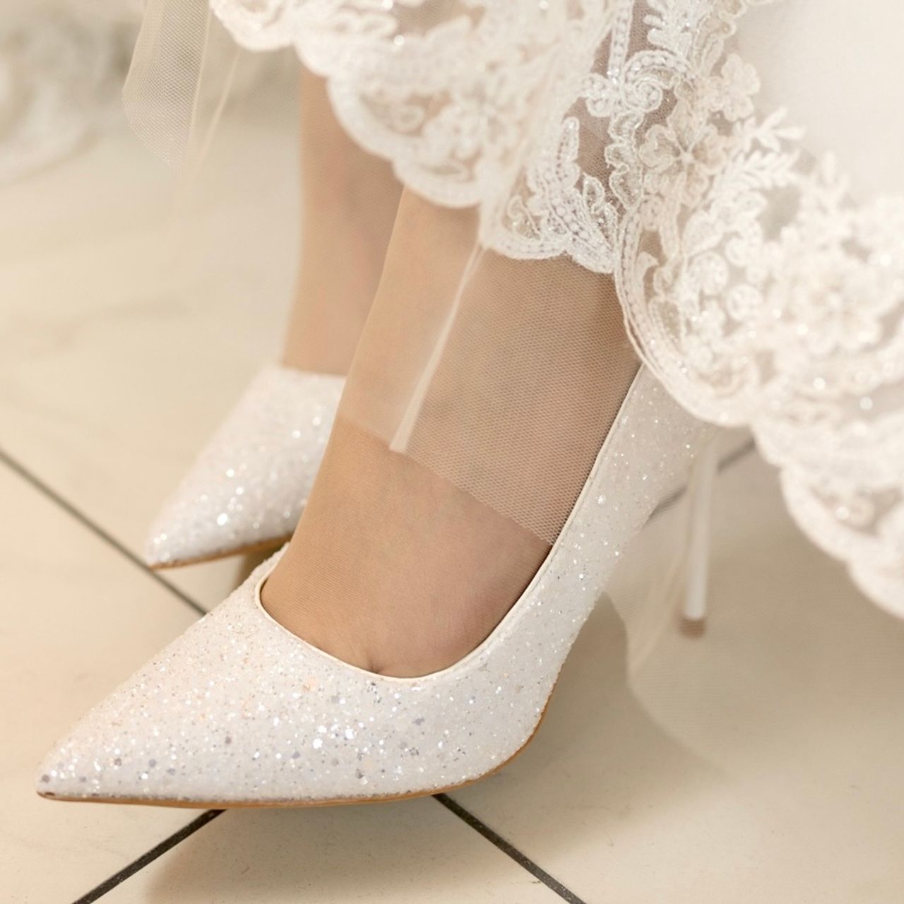 前撮りの際にシューズが見える場面でのみ、キラキラのピンヒールを着用しました✨