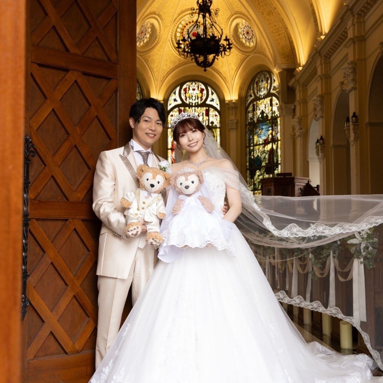 挙式を行うサンタムール大聖堂の美しいステンドグラスに見劣りしないロイヤル感に一目惚れしました💗