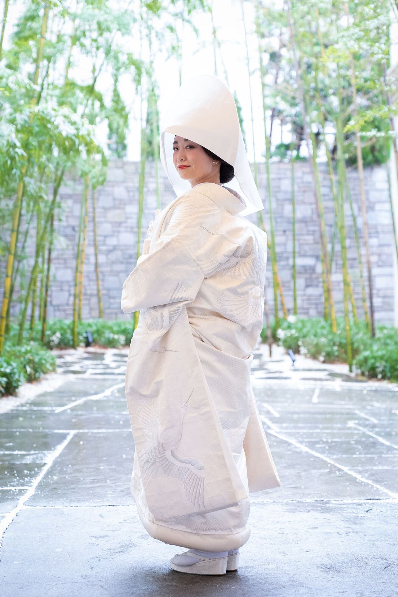 約40年前に、祖母が母のために仕立てた白無垢を着用しました。幼い頃から母の着物を着てきましたが、花嫁しか纏うことのできない衣装に袖を通すことができ、大変うれしかったです。