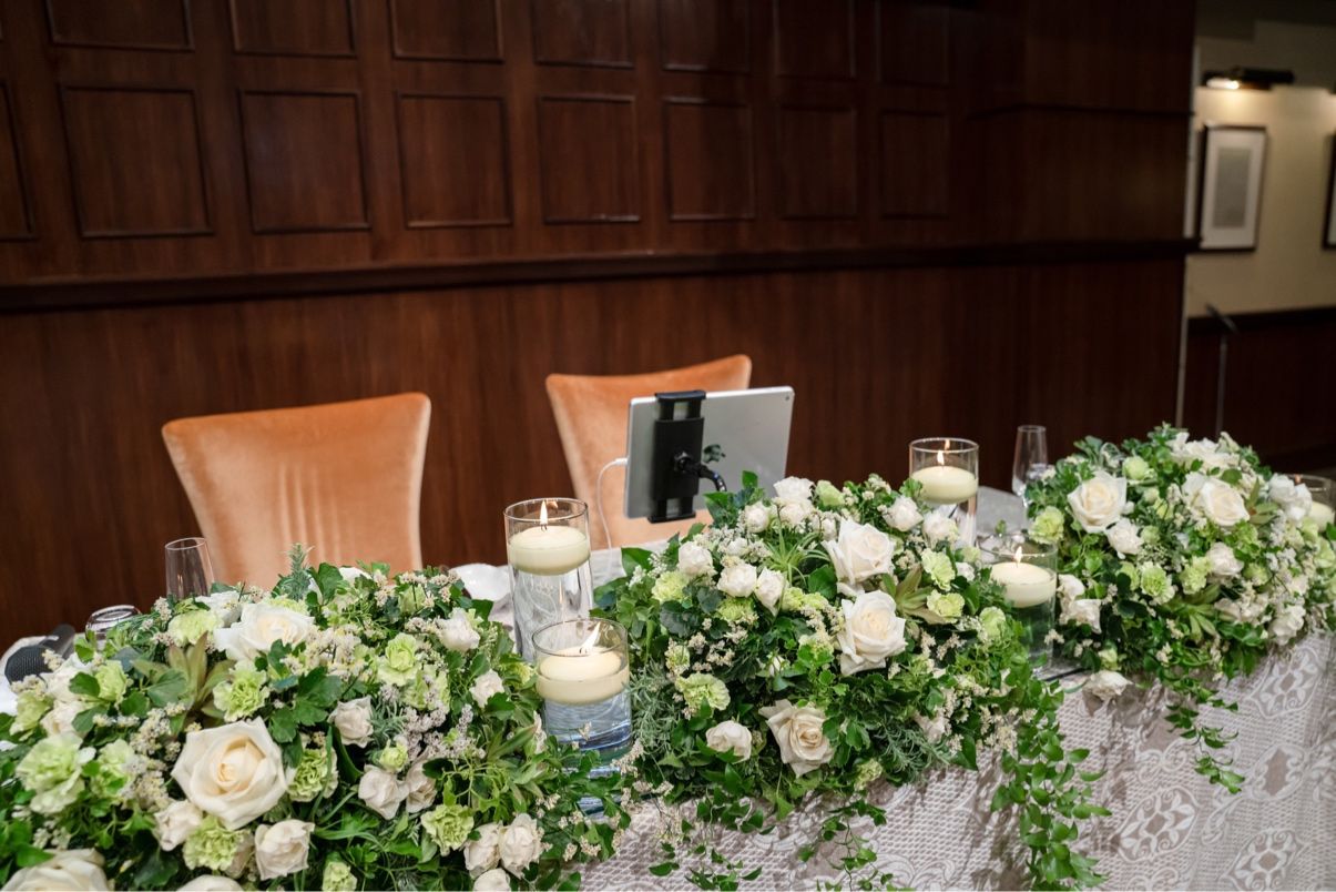 色は白とグリーンで統一し、会場装花と合うようにしました。