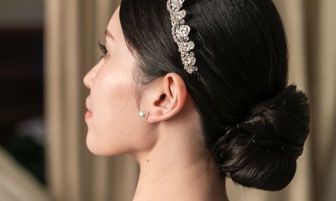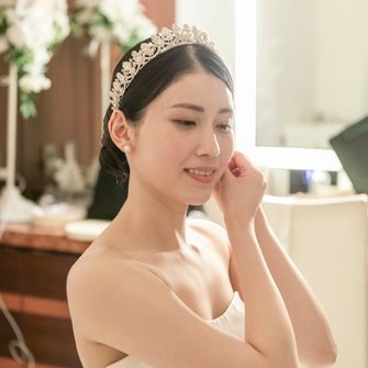 ドレスはSIBILLAの1着のみでしたが、挙式と披露宴で髪型やヘアアクセサリーを変えて、雰囲気の違いを楽しみました。
