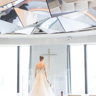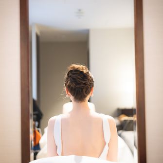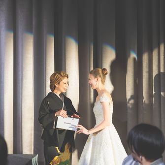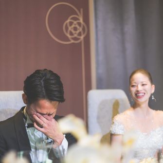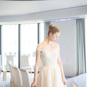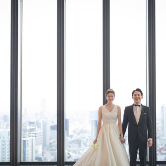 ホテル婚に憧れていてコンラッド大阪の式場見学をした際に、日の入り時刻をあらかじめ調べてカーテンをオープンにしてくれる演出に一目惚れし、その日に決定しました。