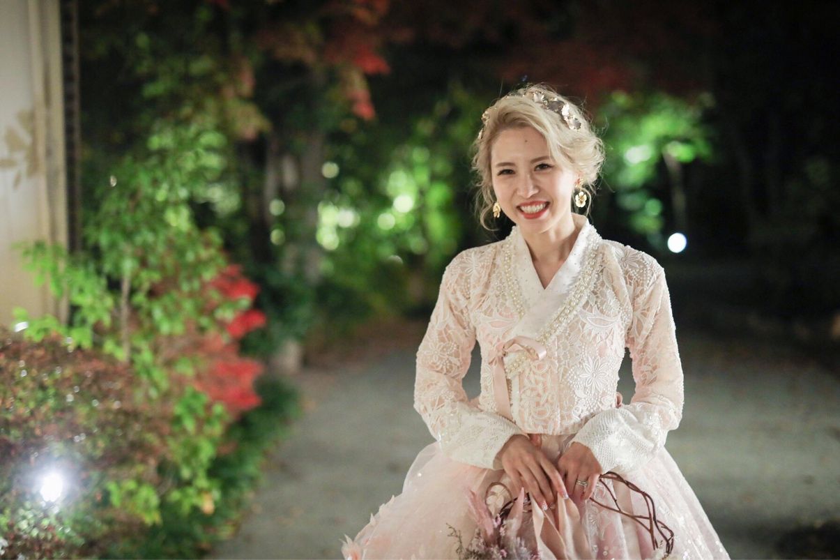 知り合いのチョゴリデザイナーさんに完全オーダーで作っていただきました。私自身が在日韓国人なので、結婚式のお色直しはチョゴリ!と決めていました。